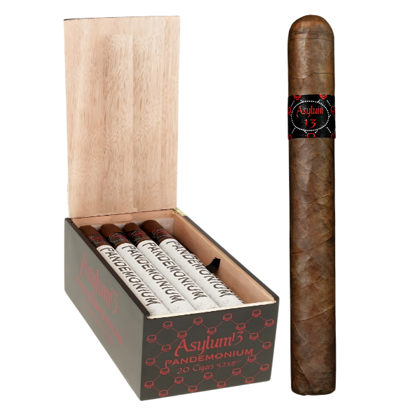 This long, hefty giant delivers notes spice, wood, leather and cocoa with an underlying sweetness. This Nicaraguan puro sports a mouthwatering, rustic, oily, dark maduro wrapper. Handmade in Nicaragua, the Pandemonium is the strongest and boldest cigar in the popular Asylum 13 collection.