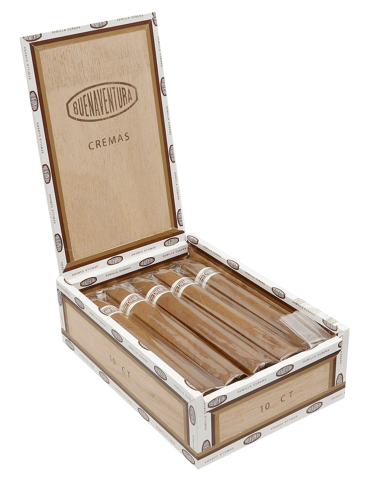 Defined by old-school Cuban style, Curivari’s Buenaventura literally means “good fortune” in Spanish and hearkens back to pre-embargo Cuban cigars with their clean-lined bands, simple font, and elegant color palette. Capturing the iconic Cuban flavor profile, the original Buenaventura line features Cuban-seed Criollo and Corojo tobaccos and are rolled using only the traditional Cuban method, all finished with a Cuban triple cap. The Buenaventura Cremas maintain all of that but add to it an Ecuadorian Connecticut wrapper, adding rich and creamy complexity to a base of chocolate, spice, leather, cedar, and sweetness, presented here in the CT Torpedo vitola.